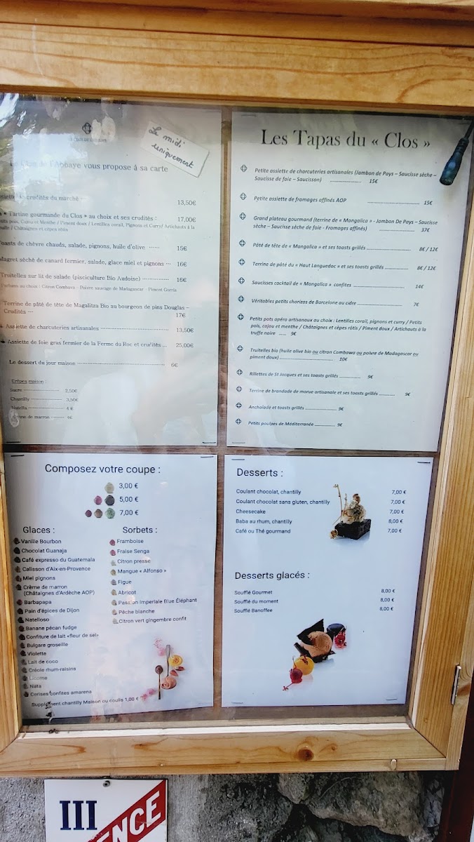 Welcome to Le clos de l'abbaye, a charming culinary gem located in Caunes-Minervois, France. This multifaceted venue serves not only as a restaurant but also as a cocktail bar, gift shop, ice cream shop, and tea house, creating a vibrant atmosphere for all. Diners are greeted by a lovely outdoor terrace, perfect for enjoying the serene surroundings while indulging in delightful dishes.